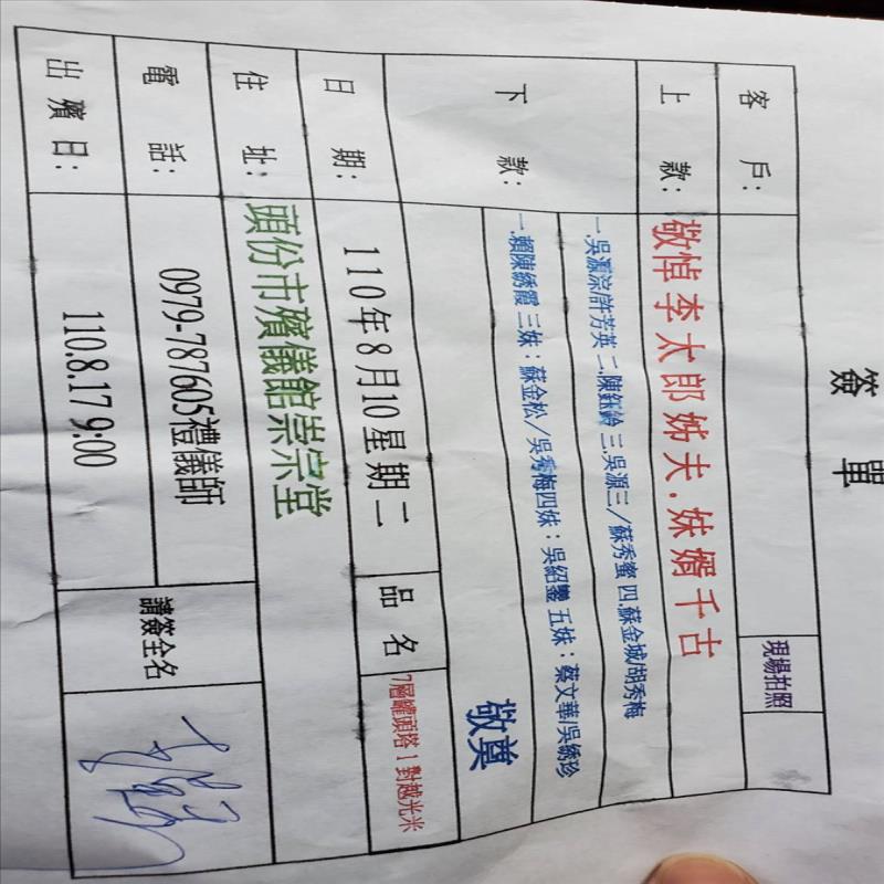 首頁 贈禮3(塔,柱,靈獅...) 七層越光米塔 七層越光米塔 NT$ 20,000 贈禮3(塔,柱,靈獅...) 供應商:鴻宇罐頭食品有限公司 銷售地區(詳細範圍): 苗栗縣, 臺中市, 彰化縣, 南投縣, 雲林縣 此商品已售出次數:1 商品流水號:2021060015 商品類別:贈禮3(塔,柱,靈獅...) > 喪事立體出租罐頭塔 購物操作說明: 分享: 分享此網頁至 臉書 數量 (單位:對 ) 1 小計 NT$0 加入購物車 進行結帳 回上一頁 回上一頁 客服諮詢(加Line好友): 商品說明 商品說明 商品類別:百貨類 產地 彰化二林 材質 米(140包)/600公克裝 尺寸 高:270cm 使用說明 我們有多年專業燈光罐頭塔、燈光飲料塔罐頭座、平安米罐頭塔、越光米塔、喪禮罐頭座的經驗,專業的工廠生廠製作喪禮罐頭塔,搭配快速的物流車隊專車為您送達,價錢合理。讓您放心歡迎花店、禮儀公司同業請詳閱下列事項:並在您下單時即同意以下內容:一、當有下列之事件發生時,恕不接受退款及退貨之服務:1‧ 商品要求送達之所在地,無此人居住或工作,且我們無法以電話聯繫上以您所提供的電話本人。2‧ 資料姓名、公司名、地址、電話等等錯誤或不完整以致無法送達或即時聯絡處理。3‧ 依指定時段前往無人簽收或商品送達時拒收。4‧ 商品依所提供的指定送達時間配送指定地點,但本人無法簽收而由他人代收。(本人無法簽收亦無法尋獲他人代收時我們仍會留訊息請他與我們聯繫,盡可能送達)。。5‧ 發生緊急事件時,因訂購人所提供的資料不完整,而無法即時聯繫上,以至無法送達。二、更換防水布條費用及須知:本公司大型罐頭山採用奈米防水布條,兼具防水及抗紫外線功能,我們會事先排版與您核對字稿,請仔細核對字稿是否有錯別字,若因核對完成而請廣告公司印出後所產生之換字問題,需更換布條所增加之成本,五層罐頭山酌收500元/次、七層罐頭山酌收600元/次、九層罐頭山酌收700元/次,若屬貨運公司定義之偏遠地區一律用貨運寄送至現場自行更換,其他更換自更改日二日內完成三、.客製化商品,恕不接受退、換貨服務。 產品特色 1.罐頭塔可依您的需求及預算價格,提供客製化專業服務。2.本罐頭塔所採用之食品均為台灣工廠生產製造優良知名品牌,品質、內容保證經嚴格控管,不採用大陸製之農產品、食品,絕無過期之商品。3.某些特殊商品及配送地區,本店有保留接單與否的權利。4.請於五天前預定,並於訂購當日完成付款手續。5.若訂購兩對以上,需指定配送不同地點,請分開下單。6.例假日備有值班人員,送貨服務迅速。7.本產品圖僅供參考,如因市場食品短缺將以同等價值產品替代。☆☆若有急件需當日送達請用以下資訊先洽詢是否有備貨專人為您服務☆☆ 全部評價 客戶評價 (1) 廠商總評 ( 1 ) 客戶評價 [商品到貨] 送貨地址:苗栗縣頭份市 送貨時間: 2021-08-13 商品到貨照片: 總筆數:1 供應商評價 5 很好 好 普通 不好 很不好 1 0 0 0 0 相似商品 九層正牌飲料罐頭塔(約600瓶) NT$24,000 11層易開罐飲料塔 NT$24,000 9層燈光柱平安米塔 NT$23,900 9層平安米塔(300克 184包)-... NT$19,500 7層平安米燈光柱-300克*112盒... NT$15,900 7層平安米塔(搭空盒300克*80包... NT$13,500 9層平安米塔西螺米(200克*184... NT$12,000 5層米塔(台灣米18公斤) NT$6,750 小型平安米塔(600克壽司米 X 1... NT$6,000 花籃 蘭花 水果籃 罐頭塔 靈獅 蓮花塔 商品成功加入購物車 !