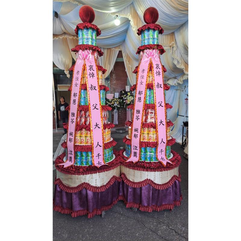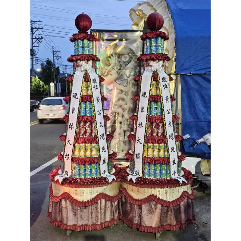 首頁 贈禮3(塔,柱,靈獅...) 7層飲料罐頭塔-大品牌/504罐 7層飲料罐頭塔-大品牌/504罐 NT$ 13,500 贈禮3(塔,柱,靈獅...) 供應商:鴻宇罐頭食品有限公司 銷售地區(詳細範圍): 苗栗縣, 臺中市, 彰化縣, 南投縣, 雲林縣 此商品已售出次數:4 商品流水號:2021060032 商品類別:贈禮3(塔,柱,靈獅...) > 喪事立體出租罐頭塔 購物操作說明: 分享: 分享此網頁至 臉書 數量 (單位:對 ) 1 小計 NT$0 加入購物車 進行結帳 回上一頁 回上一頁 客服諮詢(加Line好友): 商品說明 商品說明 商品類別:百貨類 產地 彰化二林 材質 飲料 尺寸 高:270cm 使用說明 我們有多年專業燈光罐頭塔、燈光飲料塔罐頭座、平安米罐頭塔、越光米塔、喪禮罐頭座的經驗,專業的工廠生廠製作喪禮罐頭塔,搭配快速的物流車隊專車為您送達,價錢合理。讓您放心歡迎花店、禮儀公司同業請詳閱下列事項:並在您下單時即同意以下內容:一、當有下列之事件發生時,恕不接受退款及退貨之服務:1‧ 商品要求送達之所在地,無此人居住或工作,且我們無法以電話聯繫上以您所提供的電話本人。2‧ 資料姓名、公司名、地址、電話等等錯誤或不完整以致無法送達或即時聯絡處理。3‧ 依指定時段前往無人簽收或商品送達時拒收。4‧ 商品依所提供的指定送達時間配送指定地點,但本人無法簽收而由他人代收。(本人無法簽收亦無法尋獲他人代收時我們仍會留訊息請他與我們聯繫,盡可能送達)。。5‧ 發生緊急事件時,因訂購人所提供的資料不完整,而無法即時聯繫上,以至無法送達。二、更換防水布條費用及須知:本公司大型罐頭山採用奈米防水布條,兼具防水及抗紫外線功能,我們會事先排版與您核對字稿,請仔細核對字稿是否有錯別字,若因核對完成而請廣告公司印出後所產生之換字問題,需更換布條所增加之成本,五層罐頭山酌收500元/次、七層罐頭山酌收600元/次、九層罐頭山酌收700元/次,若屬貨運公司定義之偏遠地區一律用貨運寄送至現場自行更換,其他更換自更改日二日內完成三、.客製化商品,恕不接受退、換貨服務。🧺產品的品牌、包裝等內容物會依現有商品出貨調整不在另行通知、罐頭塔或禮籃的造型及外包裝有時也會不定時更改外觀型狀,但內容物價值不變,客戶於下單前若無法接受,請勿下單!!!🧺若有不清楚建議下單前可以與客服人員聯繫。🧺因內容物為食品類商品,且訂單為客戶確認後下單才會開始客製製作,商品需另組裝完成,送貨到達現場即代表送貨完成,不適用七天鑑賞期無法進行退換貨,若能接受再下單。🧺專業配送,保證產品完整性,商品送達後會拍照回傳,若人員離開後有任何損壞不屬於公司責任。====訂購前請先確認好相關規定,無法接受時請勿下訂單==== 產品特色 1.罐頭塔可依您的需求及預算價格,提供客製化專業服務。2.本罐頭塔所採用之食品均為台灣工廠生產製造優良知名品牌,品質、內容保證經嚴格控管,不採用大陸製之農產品、食品,絕無過期之商品。3.某些特殊商品及配送地區,本店有保留接單與否的權利。4.請於五天前預定,並於訂購當日完成付款手續。5.若訂購兩對以上,需指定配送不同地點,請分開下單。6.例假日備有值班人員,送貨服務迅速。7.本產品圖僅供參考,如因市場食品短缺將以同等價值產品替代。☆☆若有急件需當日送達請用以下資訊先洽詢是否有備貨專人為您服務☆☆ 全部評價 客戶評價 (4) 廠商總評 ( 1 ) 客戶評價 [商品到貨] 送貨地址:臺中市太平區 送貨時間: 2025-10-21 商品到貨照片: [商品到貨] 送貨地址:臺中市清水區 送貨時間: 2023-10-06 商品到貨照片: [商品到貨] 送貨地址:苗栗縣後龍鎮 送貨時間: 2023-08-15 商品到貨照片: [商品到貨] 送貨地址:彰化縣溪州鄉 送貨時間: 2021-10-26 商品到貨照片: 總筆數:4 供應商評價 5 很好 好 普通 不好 很不好 1 0 0 0 0 相似商品 【殯儀館內】9層燈光柱平安米塔 (1... NT$24,000 7層平安米塔 (600克 112包米... NT$18,000 五層米塔(600公克/64包) NT$15,000 9層平安米塔(600克米 X40包) NT$14,500 11層絢彩平安米塔(10包/3公斤) NT$13,500 7層平安米塔 NT$12,800 5層平安米塔(中興米一等米,搭空盒,... NT$6,000 平安圓滿塔(單座五層米塔) NT$5,800 靈獅小米塔 (300克米 34包) NT$5,250 花籃 蘭花 水果籃 罐頭塔 靈獅 蓮花塔 商品成功加入購物車 !