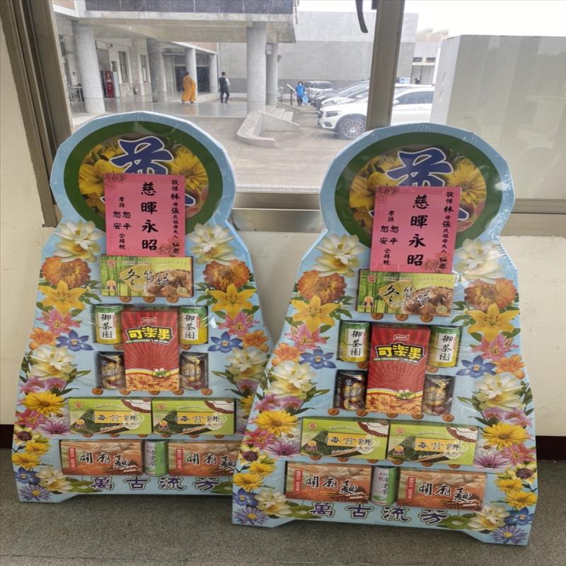 首頁 贈禮3(塔,柱,靈獅...) 5層罐頭塔 5層罐頭塔 NT$ 1,680 贈禮3(塔,柱,靈獅...) 供應商:頭份花店 銷售地區(詳細範圍): 苗栗縣 此商品已售出次數:1 商品流水號:2021060297 商品類別:贈禮3(塔,柱,靈獅...) > 喪事平面罐頭塔 購物操作說明: 分享: 分享此網頁至 臉書 數量 (單位:對 ) 1 小計 NT$0 加入購物車 進行結帳 回上一頁 回上一頁 客服諮詢(加Line好友): 商品說明 商品說明 商品類別:百貨類 產地 台灣 使用說明 ➡️產品的品牌、包裝等內容物會依現有商品出貨調整不在另行通知、罐頭塔或禮籃的造型及外包裝有時也會不定時更改外觀型狀,但內容物價值不變,客戶於下單前若無法接受,請勿下單!!!➡️若有不清楚建議下單前可以與客服人員聯繫。➡️因內容物為食品類商品,且訂單為客戶確認後下單才會開始客製製作,商品需另組裝完成,送貨到達現場即代表送貨完成,不適用七天鑑賞期無法進行退換貨,若能接受再下單。➡️專業配送,保證產品完整性,商品送達後會拍照回傳,若人員離開後有任何損壞不屬於公司責任。====訂購前請先確認好相關規定,無法接受時請勿下訂單==== 產品特色 ◆有一說是喪事期間親友有錢出錢、有力出力,其中有些人便會提供食物作為祭品,待出殯以後再由喪家分送給親友,而罐頭塔就是在食物種類越來越多樣的時候所出現的祭品選項之一。◆還有一種說法是早期的罐頭以柴米油鹽醬醋茶為主,是由親家所送的。因為治喪期間喪家處理後事十分地忙碌,親家送這些東西表示幫他們在這段時間裡「顧厝」。至於拿罐頭來裝柴米油鹽醬醋茶的原因,大概是因為方便準備、攜帶與保存。 全部評價 客戶評價 (1) 廠商總評 ( 0 ) 客戶評價 [商品到貨] 送貨地址:苗栗縣頭份市 送貨時間: 2022-06-03 商品到貨照片: 總筆數:1 供應商評價 很好 好 普通 不好 很不好 0 0 0 0 0 相似商品 C05平面米+油罐頭塔 NT$6,300 6X8罐頭塔 NT$5,400 A06 綜合飲料塔 NT$4,500 4*6平安米籃 NT$3,600 4X4台灣好米禮籃 NT$3,500 綜合罐頭塔C款 NT$3,000 平面綜合罐頭塔-B03 NT$2,700 {貨運配送}平面七層罐頭塔-701款... NT$1,800 5-1 5層平面罐頭塔 NT$1,400 花籃 蘭花 水果籃 罐頭塔 靈獅 蓮花塔 商品成功加入購物車 !