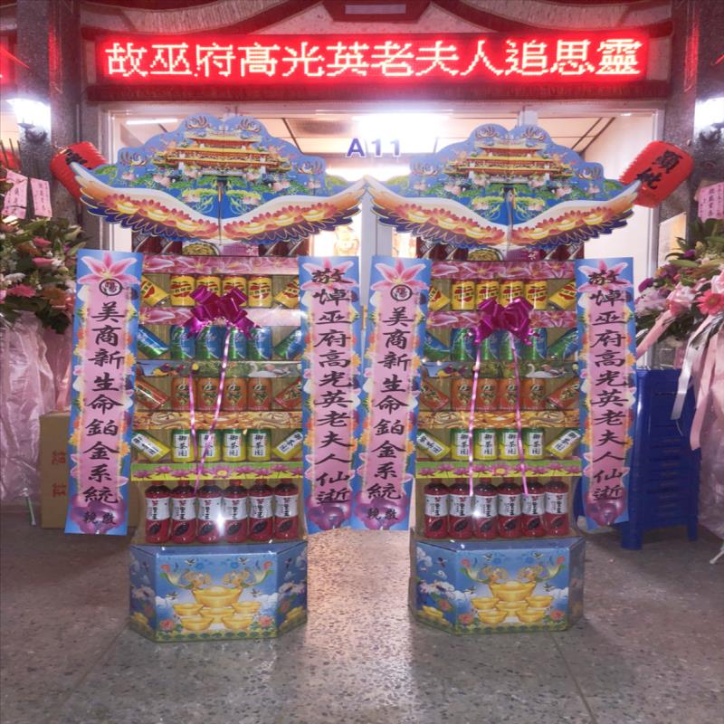 首頁 贈禮3(塔,柱,靈獅...) 六層飲料罐頭禮籃(屏東) 六層飲料罐頭禮籃(屏東) NT$ 2,400 贈禮3(塔,柱,靈獅...) 供應商:正佳禮籃 銷售地區(詳細範圍): 屏東縣 此商品已售出次數:5 商品流水號:2021071004 商品類別:贈禮3(塔,柱,靈獅...) > 喪事平面罐頭塔 購物操作說明: 分享: 分享此網頁至 臉書 數量 (單位:對 ) 1 小計 NT$0 加入購物車 進行結帳 回上一頁 回上一頁 客服諮詢(加Line好友): 商品說明 商品說明 商品類別:百貨類 產地 台灣 材質 飲料 尺寸 高:約160CM 使用說明 ◆適用於喪禮告別式悼念敬輓用。◆本產品以「對」為單位。◆採用之食品均為台灣製優良知名品牌,品質保證嚴格控管,絕無過期產品。◆擁有最完善的專業配送,保證產品完整性。◆送達後會請收件人簽收後並拍照上傳。 產品特色 ◆有一說是喪事期間親友有錢出錢、有力出力,其中有些人便會提供食物作為祭品,待出殯以後再由喪家分送給親友,而罐頭塔就是在食物種類越來越多樣的時候所出現的祭品選項之一。◆還有一種說法是早期的罐頭以柴米油鹽醬醋茶為主,是由親家所送的。因為治喪期間喪家處理後事十分地忙碌,親家送這些東西表示幫他們在這段時間裡「顧厝」。至於拿罐頭來裝柴米油鹽醬醋茶的原因,大概是因為方便準備、攜帶與保存。 全部評價 客戶評價 (5) 廠商總評 ( 2 ) 客戶評價 [商品到貨] 送貨地址:屏東縣屏東市 送貨時間: 2025-02-28 商品到貨照片: [商品到貨] 送貨地址:屏東縣高樹鄉 送貨時間: 2025-02-09 商品到貨照片: [商品到貨] 送貨地址:屏東縣屏東市 送貨時間: 2024-02-19 商品到貨照片: [商品到貨] 送貨地址:屏東縣長治鄉 送貨時間: 2022-03-16 商品到貨照片: [商品到貨] 送貨地址:屏東縣屏東市 送貨時間: 2021-12-12 商品到貨照片: 總筆數:5 供應商評價 5 很好 好 普通 不好 很不好 2 0 0 0 0 相似商品 4X4台灣好米禮籃 NT$5,200 4層平面罐頭塔 NT$5,000 C03平面飲料罐頭塔(旗山,美濃,六... NT$4,800 追思禮籃B5 NT$3,980 4*4層平面平安米塔 NT$3,600 三層平安米禮籃組(18盒) NT$2,400 七層飲料食品罐頭塔 NT$2,250 小平安圓滿塔(單座三層飲料塔) NT$2,000 平面七層罐頭塔-704款 NT$1,600 花籃 蘭花 水果籃 罐頭塔 靈獅 蓮花塔 商品成功加入購物車 !
