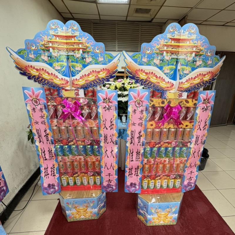 首頁 贈禮3(塔,柱,靈獅...) 六層飲料罐頭禮籃(高雄) 六層飲料罐頭禮籃(高雄) NT$ 2,700 贈禮3(塔,柱,靈獅...) 供應商:正佳禮籃 銷售地區(詳細範圍): 高雄市 此商品已售出次數:6 商品流水號:2021071014 商品類別:贈禮3(塔,柱,靈獅...) > 喪事平面罐頭塔 購物操作說明: 分享: 分享此網頁至 臉書 數量 (單位:對 ) 1 小計 NT$0 加入購物車 進行結帳 回上一頁 回上一頁 客服諮詢(加Line好友): 商品說明 商品說明 商品類別:百貨類 產地 台灣 材質 飲料 尺寸 高:約160CM 使用說明 ◆適用於喪禮告別式悼念敬輓用。◆本產品以「對」為單位。◆採用之食品均為台灣製優良知名品牌,品質保證嚴格控管,絕無過期產品。◆擁有最完善的專業配送,保證產品完整性。◆送達後會請收件人簽收後並拍照上傳。 產品特色 ◆有一說是喪事期間親友有錢出錢、有力出力,其中有些人便會提供食物作為祭品,待出殯以後再由喪家分送給親友,而罐頭塔就是在食物種類越來越多樣的時候所出現的祭品選項之一。◆還有一種說法是早期的罐頭以柴米油鹽醬醋茶為主,是由親家所送的。因為治喪期間喪家處理後事十分地忙碌,親家送這些東西表示幫他們在這段時間裡「顧厝」。至於拿罐頭來裝柴米油鹽醬醋茶的原因,大概是因為方便準備、攜帶與保存。 全部評價 客戶評價 (6) 廠商總評 ( 2 ) 客戶評價 [商品到貨] 送貨地址:高雄市三民區 送貨時間: 2025-11-18 商品到貨照片: [商品到貨] 送貨地址:高雄市鳥松區 送貨時間: 2025-04-17 商品到貨照片: [商品到貨] 送貨地址:高雄市鳥松區 送貨時間: 2023-07-03 商品到貨照片: 無 [商品到貨] 送貨地址:高雄市內門區 送貨時間: 2022-11-10 商品到貨照片: [商品到貨] 送貨地址:高雄市內門區 送貨時間: 2022-11-10 商品到貨照片: 總筆數:6 1 2> 供應商評價 5 很好 好 普通 不好 很不好 2 0 0 0 0 相似商品 4X5平安米禮籃(300克x40包) NT$4,700 4X4台灣好米禮籃 NT$3,750 平面平安米塔3X5(30包) NT$3,750 6層綜合飲料塔_中埔 NT$3,600 平安米四層平面米塔 NT$3,000 C09平面飲料罐頭塔 NT$3,000 平面平安米塔4*3(24包) NT$2,600 平面七層飲料罐頭塔 NT$2,550 四層綜合食品禮籃 NT$2,250 花籃 蘭花 水果籃 罐頭塔 靈獅 蓮花塔 商品成功加入購物車 !