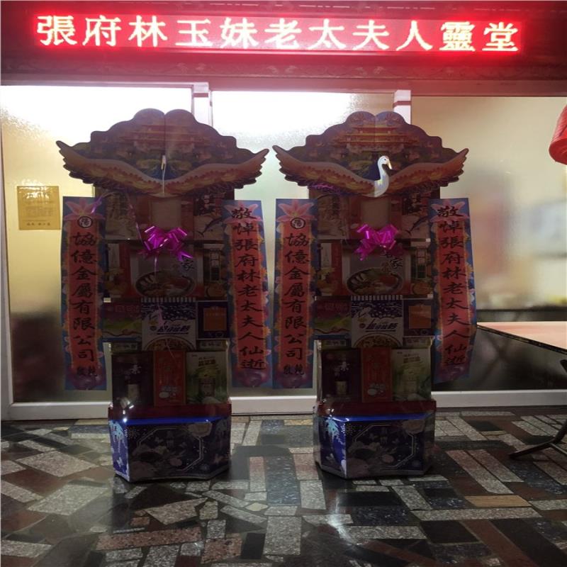 首頁 贈禮3(塔,柱,靈獅...) 四層食品罐頭禮籃(高雄) 四層食品罐頭禮籃(高雄) NT$ 2,700 贈禮3(塔,柱,靈獅...) 供應商:正佳禮籃 銷售地區(詳細範圍): 高雄市 此商品已售出次數:4 商品流水號:2021071016 商品類別:贈禮3(塔,柱,靈獅...) > 喪事平面罐頭塔 購物操作說明: 分享: 分享此網頁至 臉書 數量 (單位:對 ) 1 小計 NT$0 加入購物車 進行結帳 回上一頁 回上一頁 客服諮詢(加Line好友): 商品說明 商品說明 商品類別:百貨類 產地 台灣 材質 食用油.米.醬油.麵.烏醋 尺寸 高:約150CM 使用說明 ◆適用於喪禮告別式悼念敬輓用。◆本產品以「對」為單位。◆採用之食品均為台灣製優良知名品牌,品質保證嚴格控管,絕無過期產品。◆擁有最完善的專業配送,保證產品完整性。◆送達後會請收件人簽收後並拍照上傳。 產品特色 ◆有一說是喪事期間親友有錢出錢、有力出力,其中有些人便會提供食物作為祭品,待出殯以後再由喪家分送給親友,而罐頭塔就是在食物種類越來越多樣的時候所出現的祭品選項之一。◆還有一種說法是早期的罐頭以柴米油鹽醬醋茶為主,是由親家所送的。因為治喪期間喪家處理後事十分地忙碌,親家送這些東西表示幫他們在這段時間裡「顧厝」。至於拿罐頭來裝柴米油鹽醬醋茶的原因,大概是因為方便準備、攜帶與保存。 全部評價 客戶評價 (4) 廠商總評 ( 2 ) 客戶評價 [商品到貨] 送貨地址:高雄市三民區 送貨時間: 2025-11-18 商品到貨照片: [商品到貨] 送貨地址:高雄市三民區 送貨時間: 2023-10-06 商品到貨照片: [商品到貨] 送貨地址:高雄市三民區 送貨時間: 2022-11-19 商品到貨照片: [商品到貨] 送貨地址:高雄市三民區 送貨時間: 2022-11-12 商品到貨照片: 總筆數:4 供應商評價 5 很好 好 普通 不好 很不好 2 0 0 0 0 相似商品 九層平面花生湯八寶粥罐頭塔 (花蓮... NT$5,900 綜合飲料禮籃B款 NT$5,250 四層平安米塔 NT$3,990 平面綜合禮籃B05 NT$3,750 七層粽合飲料罐頭塔 NT$3,300 綜合罐頭塔B款 NT$3,000 5呎6平面禮籃 NT$2,400 7-5B 7層平面罐頭塔 NT$2,100 {貨運配送}平面七層罐頭塔-701款... NT$1,800 花籃 蘭花 水果籃 罐頭塔 靈獅 蓮花塔 商品成功加入購物車 !