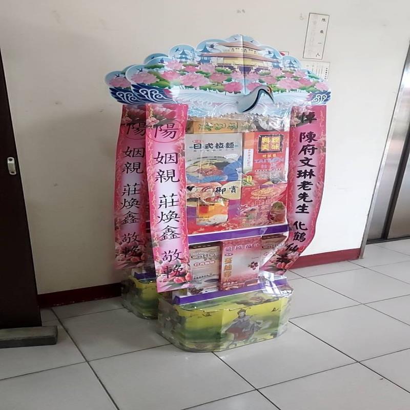 首頁 贈禮3(塔,柱,靈獅...) 綜合食品罐頭塔A 綜合食品罐頭塔A NT$ 2,300 贈禮3(塔,柱,靈獅...) 供應商:東籬花苑 銷售地區(詳細範圍): 嘉義市, 嘉義縣, 臺南市 此商品已售出次數:3 商品流水號:2021071115 商品類別:贈禮3(塔,柱,靈獅...) > 喪事平面罐頭塔 購物操作說明: 分享: 分享此網頁至 臉書 數量 (單位:對 ) 1 小計 NT$0 加入購物車 進行結帳 回上一頁 回上一頁 客服諮詢(加Line好友): 商品說明 商品說明 商品類別:百貨類 產地 台灣 材質 餅乾.飲料.麵.海苔.醋 使用說明 🧺產品的品牌、包裝等內容物會依現有商品出貨調整不在另行通知、罐頭塔或禮籃的造型及外包裝有時也會不定時更改外觀型狀,但內容物價值不變,客戶於下單前若無法接受,請勿下單!!!🧺若有不清楚建議下單前可以與客服人員聯繫。🧺因內容物為食品類商品,且訂單為客戶確認後下單才會開始客製製作,商品需另組裝完成,送貨到達現場即代表送貨完成,不適用七天鑑賞期無法進行退換貨,若能接受再下單。🧺專業配送,保證產品完整性,商品送達後會拍照回傳,若人員離開後有任何損壞不屬於公司責任。====訂購前請先確認好相關規定,無法接受時請勿下訂單==== 產品特色 ◆有一說是喪事期間親友有錢出錢、有力出力,其中有些人便會提供食物作為祭品,待出殯以後再由喪家分送給親友,而罐頭塔就是在食物種類越來越多樣的時候所出現的祭品選項之一。 ◆還有一種說法是早期的罐頭以柴米油鹽醬醋茶為主,是由親家所送的。因為治喪期間喪家處理後事十分地忙碌,親家送這些東西表示幫他們在這段時間裡「顧厝」。至於拿罐頭來裝柴米油鹽醬醋茶的原因,大概是因為方便準備、攜帶與保存。 全部評價 客戶評價 (3) 廠商總評 ( 0 ) 客戶評價 [商品到貨] 送貨地址:臺南市柳營區 送貨時間: 2023-10-25 商品到貨照片: 無 [商品到貨] 送貨地址:臺南市柳營區 送貨時間: 2023-08-17 商品到貨照片: [商品到貨] 送貨地址:臺南市新營區 送貨時間: 2022-03-28 商品到貨照片: 無 總筆數:3 供應商評價 很好 好 普通 不好 很不好 0 0 0 0 0 相似商品 7層圓形飲料塔(大品牌飲料) NT$19,500 7層平面花生湯與八寶粥-台北 NT$6,000 7層飲料罐頭塔(花生湯,八寶粥) NT$5,600 平面飲料平安米塔 NT$5,400 圓滿平安米塔 NT$4,750 7層平面綜合罐頭塔B NT$3,000 7-7 7層平面罐頭塔 NT$3,000 飲料罐頭禮籃(C03款) NT$2,400 3層平面罐頭塔 NT$2,250 花籃 蘭花 水果籃 罐頭塔 靈獅 蓮花塔 商品成功加入購物車 !