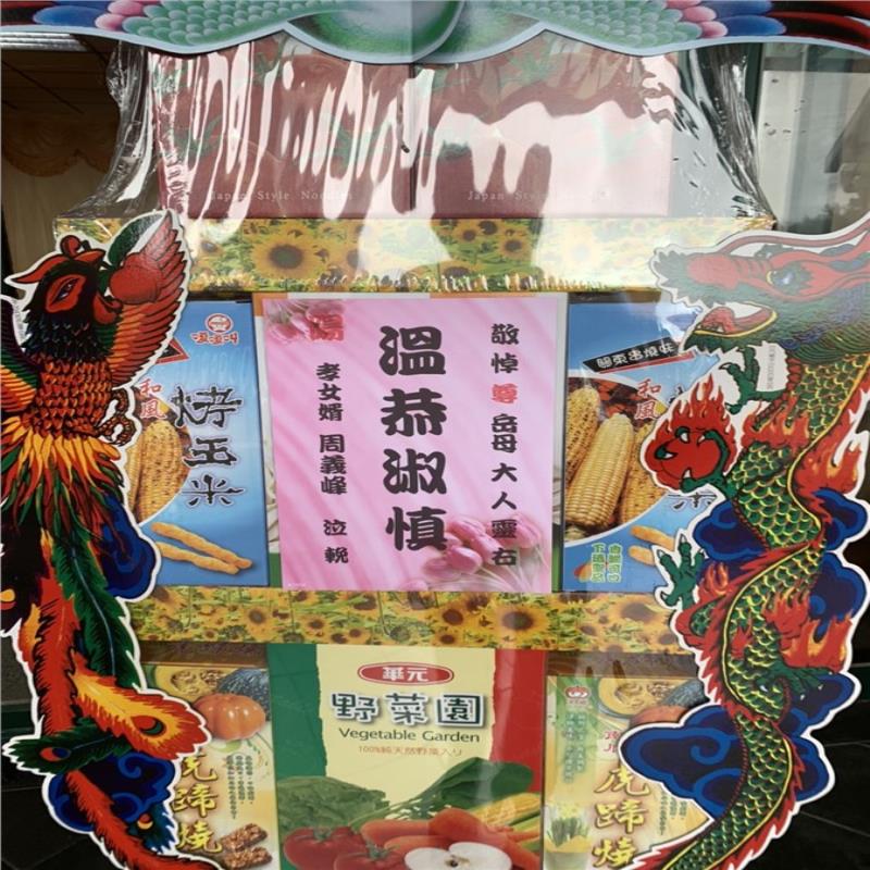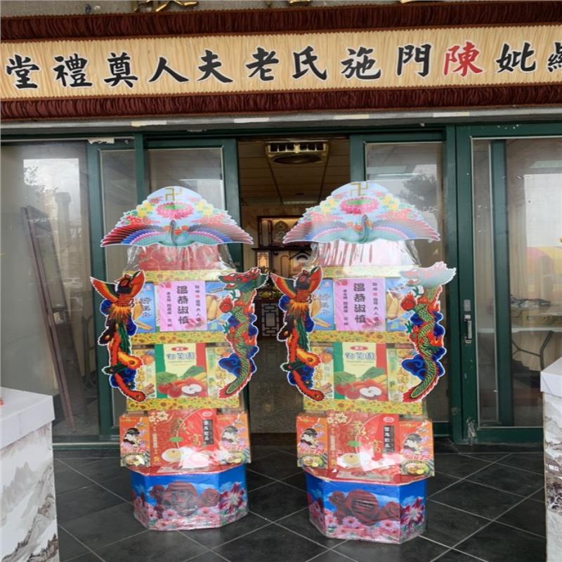 首頁 贈禮3(塔,柱,靈獅...) 四層綜合食品禮籃 四層綜合食品禮籃 NT$ 2,300 贈禮3(塔,柱,靈獅...) 供應商:靖海花坊 銷售地區(詳細範圍): 澎湖縣 此商品已售出次數:1 商品流水號:2021071616 商品類別:贈禮3(塔,柱,靈獅...) > 喪事平面罐頭塔 購物操作說明: 分享: 分享此網頁至 臉書 數量 (單位:對 ) 1 小計 NT$0 加入購物車 進行結帳 回上一頁 回上一頁 客服諮詢(加Line好友): 商品說明 商品說明 商品類別:百貨類 產地 台灣 材質 食用油、麵、醬油 使用說明 ◆適用於喪禮告別式悼念敬輓用◆本產品以「對」為單位。◆採用之食品均為台灣製優良知名品牌,品質保證嚴格控管,絕無過期產品。◆擁有最完善的專業配送,保證產品完整性。◆送達後會請收件人簽收後並拍照上傳。🧺產品的品牌、包裝等內容物會依現有商品出貨調整不在另行通知、罐頭塔或禮籃的造型及外包裝有時也會不定時更改外觀型狀,但內容物價值不變,客戶於下單前若無法接受,請勿下單!!!🧺若有不清楚建議下單前可以與客服人員聯繫。🧺因內容物為食品類商品,且訂單為客戶確認後下單才會開始客製製作,商品需另組裝完成,送貨到達現場即代表送貨完成,不適用七天鑑賞期無法進行退換貨,若能接受再下單。🧺專業配送,保證產品完整性,商品送達後會拍照回傳,若人員離開後有任何損壞不屬於公司責任。====訂購前請先確認好相關規定,無法接受時請勿下訂單==== 產品特色 ◆有一說是喪事期間親友有錢出錢、有力出力,其中有些人便會提供食物作為祭品,待出殯以後再由喪家分送給親友,而罐頭塔就是在食物種類越來越多樣的時候所出現的祭品選項之一。◆還有一種說法是早期的罐頭以柴米油鹽醬醋茶為主,是由親家所送的。因為治喪期間喪家處理後事十分地忙碌,親家送這些東西表示幫他們在這段時間裡「顧厝」。至於拿罐頭來裝柴米油鹽醬醋茶的原因,大概是因為方便準備、攜帶與保存。 全部評價 客戶評價 (1) 廠商總評 ( 0 ) 客戶評價 [商品到貨] 送貨地址:澎湖縣馬公市 送貨時間: 2023-01-15 商品到貨照片: 總筆數:1 供應商評價 很好 好 普通 不好 很不好 0 0 0 0 0 相似商品 B06 五層平安米油塔 NT$7,200 五層平面平安米塔 NT$4,900 A08 綜合食品塔 NT$3,000 5*3層平面平安米塔 NT$3,000 {貨運配送}平面七層罐頭塔-711款... NT$2,800 平面綜合罐頭塔-B02 NT$2,700 七層一般飲料食品平面罐頭塔 NT$2,500 {單座}7層平面米塔(11包米) NT$2,450 五層綜合飲料組禮籃 NT$2,300 花籃 蘭花 水果籃 罐頭塔 靈獅 蓮花塔 商品成功加入購物車 !