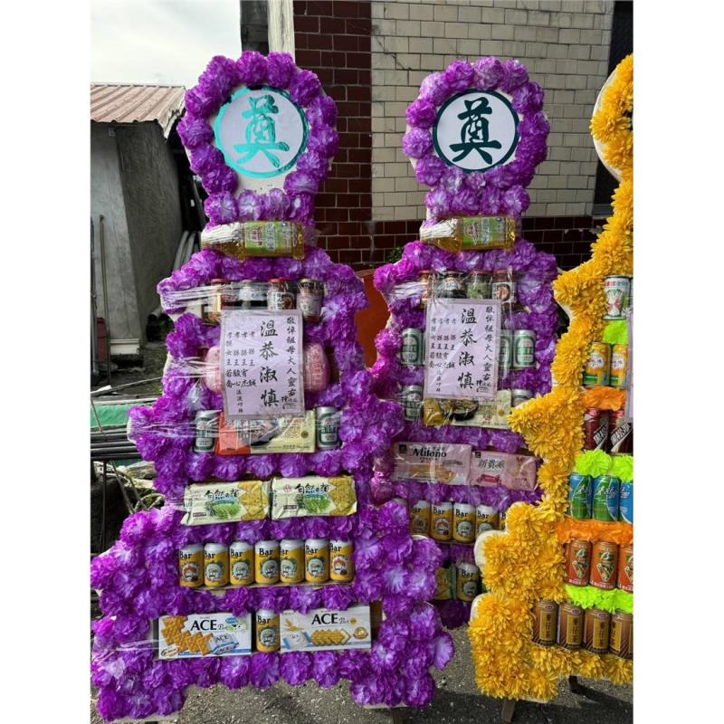 首頁 贈禮3(塔,柱,靈獅...) 7層飲料罐頭塔 7層飲料罐頭塔 NT$ 3,000 贈禮3(塔,柱,靈獅...) 供應商:玫瑰園花藝設計茶坊 銷售地區(詳細範圍): 花蓮縣 此商品已售出次數:3 商品流水號:2021071767 商品類別:贈禮3(塔,柱,靈獅...) > 喪事平面罐頭塔 購物操作說明: 分享: 分享此網頁至 臉書 數量 (單位:對 ) 1 小計 NT$0 加入購物車 進行結帳 回上一頁 回上一頁 客服諮詢(加Line好友): 商品說明 商品說明 商品類別:百貨類 產地 台灣 材質 內含易開罐飲料 使用說明 ◆適用於喪禮告別式悼念敬輓用。◆本產品以「對」為單位。◆採用之食品均為台灣製優良知名品牌,品質保證嚴格控管,絕無過期產品。◆擁有最完善的專業配送,保證產品完整性。◆送達後會請收件人簽收後並拍照上傳。 產品特色 ◆有一說是喪事期間親友有錢出錢、有力出力,其中有些人便會提供食物作為祭品,待出殯以後再由喪家分送給親友,而罐頭塔就是在食物種類越來越多樣的時候所出現的祭品選項之一。◆還有一種說法是早期的罐頭以柴米油鹽醬醋茶為主,是由親家所送的。因為治喪期間喪家處理後事十分地忙碌,親家送這些東西表示幫他們在這段時間裡「顧厝」。至於拿罐頭來裝柴米油鹽醬醋茶的原因,大概是因為方便準備、攜帶與保存。 全部評價 客戶評價 (3) 廠商總評 ( 0 ) 客戶評價 [商品到貨] 送貨地址:花蓮縣玉里鎮 送貨時間: 2024-10-16 商品到貨照片: [商品到貨] 送貨地址:花蓮縣瑞穗鄉 送貨時間: 2024-02-07 商品到貨照片: [商品到貨] 送貨地址:花蓮縣玉里鎮 送貨時間: 2023-08-28 商品到貨照片: 總筆數:3 供應商評價 很好 好 普通 不好 很不好 0 0 0 0 0 相似商品 9層方形平安米塔 NT$21,000 C11平面大型罐頭塔 NT$9,750 混合飲料塔 NT$4,320 綜合禮籃C款 NT$3,750 7尺8平安米塔 NT$3,600 7層飲料罐頭塔 NT$3,300 小牌綜合飲料罐頭禮籃(B03) NT$3,000 7尺8健康油罐頭塔 NT$2,750 三層綜合食品組禮籃E NT$2,400 花籃 蘭花 水果籃 罐頭塔 靈獅 蓮花塔 商品成功加入購物車 !