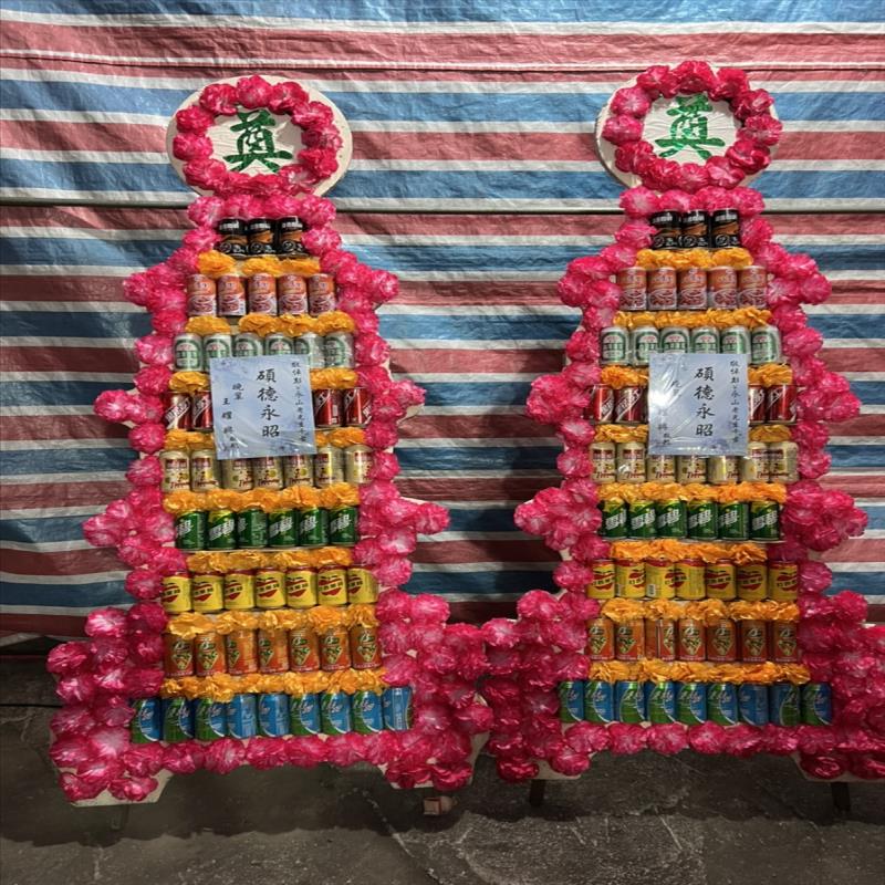 首頁 贈禮3(塔,柱,靈獅...) 9層飲料罐頭塔 9層飲料罐頭塔 NT$ 3,600 贈禮3(塔,柱,靈獅...) 供應商:玫瑰園花藝設計茶坊 銷售地區(詳細範圍): 花蓮縣 此商品已售出次數:2 商品流水號:2021071770 商品類別:贈禮3(塔,柱,靈獅...) > 喪事平面罐頭塔 購物操作說明: 分享: 分享此網頁至 臉書 數量 (單位:對 ) 1 小計 NT$0 加入購物車 進行結帳 回上一頁 回上一頁 客服諮詢(加Line好友): 商品說明 商品說明 商品類別:百貨類 產地 台灣 材質 內含易開罐飲料 使用說明 ◆適用於喪禮告別式悼念敬輓用。◆本產品以「對」為單位。◆採用之食品均為台灣製優良知名品牌,品質保證嚴格控管,絕無過期產品。◆擁有最完善的專業配送,保證產品完整性。◆送達後會請收件人簽收後並拍照上傳。 產品特色 ◆有一說是喪事期間親友有錢出錢、有力出力,其中有些人便會提供食物作為祭品,待出殯以後再由喪家分送給親友,而罐頭塔就是在食物種類越來越多樣的時候所出現的祭品選項之一。◆還有一種說法是早期的罐頭以柴米油鹽醬醋茶為主,是由親家所送的。因為治喪期間喪家處理後事十分地忙碌,親家送這些東西表示幫他們在這段時間裡「顧厝」。至於拿罐頭來裝柴米油鹽醬醋茶的原因,大概是因為方便準備、攜帶與保存。 全部評價 客戶評價 (2) 廠商總評 ( 0 ) 客戶評價 [商品到貨] 送貨地址:花蓮縣富里鄉 送貨時間: 2023-10-06 商品到貨照片: [商品到貨] 送貨地址:花蓮縣富里鄉 送貨時間: 2022-04-13 商品到貨照片: 總筆數:2 供應商評價 很好 好 普通 不好 很不好 0 0 0 0 0 相似商品 11層平安米塔(600克平安米X12... NT$27,000 9-4 9層平面罐頭塔 NT$5,850 罐頭塔8尺2 NT$5,700 C07平面咖啡罐頭塔(旗山,美濃,六... NT$4,950 小牌綜合飲料罐頭禮籃(B04)-小牌... NT$3,600 7層罐頭塔B款(後龍、苗栗、頭屋、南... NT$3,200 7-6B 7層平面罐頭塔 NT$2,700 平安米罐頭塔(平安米300克X20包... NT$2,600 四層綜合食品禮籃 NT$2,300 花籃 蘭花 水果籃 罐頭塔 靈獅 蓮花塔 商品成功加入購物車 !