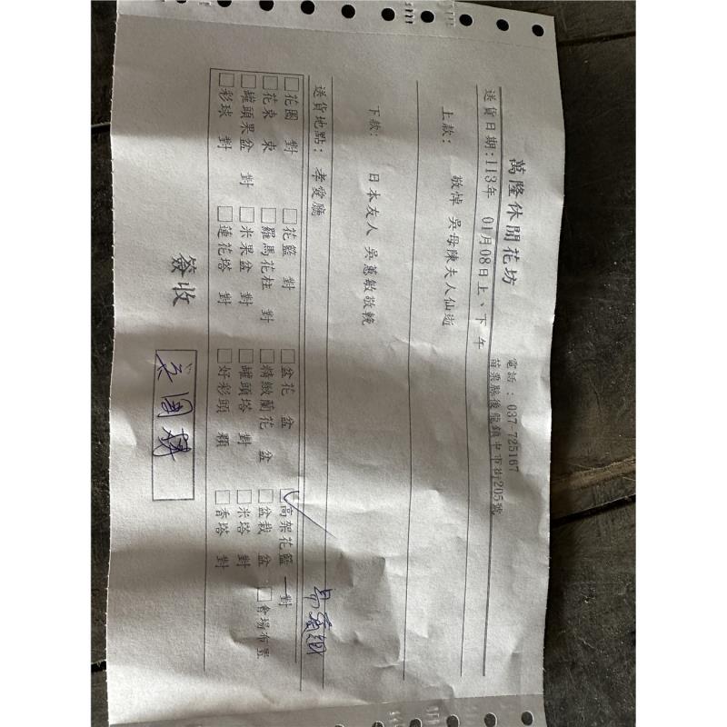 首頁 贈禮1(花籃/水果籃) A07_藝術高架花籃 A07_藝術高架花籃 NT$ 3,450 贈禮1(花籃/水果籃) 供應商:萬隆休閒花坊 銷售地區(詳細範圍): 苗栗縣 此商品已售出次數:5 商品流水號:2021072092 商品類別:贈禮1(花籃/水果籃) > 喪事 > 花籃 購物操作說明: 分享: 分享此網頁至 臉書 數量 (單位:對 ) 1 小計 NT$0 加入購物車 進行結帳 回上一頁 回上一頁 客服諮詢(加Line好友): 商品說明 商品說明 商品類別:佈置 主要材質 ✿花材:菊花、百合、時令花材為主 顏色說明 ✿以當季花材為主✿依等值花材,色系不變下作調整 尺寸 長:每盆依其生長的不同有不同高度 配件說明 ※花材常有季節性短缺的問題,若該花材短缺圖片中花材會稍加更動將以同等花材代替。✿花泥、花盆、緞帶、布幔、鐵架✿花盆、緞帶、布幔等圖片內之顏色和材料因市場因素,時節不同而有所調整,以收到實品為主 佈置程序 ★請於使用前3日訂購★依據客戶所設定的送貨時間提早送至會場★訂購花禮,皆有免費提供花卡,請於結帳前填寫清楚★客服人員收到訂單會主動與您連繫確認送貨資訊及花卡內容★送達後會請收花人簽收後並拍照上傳★客戶可於送達日隔日登入查詢到貨照片並給予評價★如有疑問或緊急訂單可洽詢線上客服或撥打客服專線✿花材會隨季節而有所不同,如遇市場短缺或品質不良,得以等值花材替代,圖片中只提供參考,會依主花不變的狀況下,依等值,色系、尺寸不變下作調整,敬請見諒!✿鮮花屬於生鮮產品,因有保鮮期限,不適用於商品使用七天鑑賞期,商品送達一律不接受退貨。✿會隨季節而有所不同,如遇市場短缺或品質不良,得以等值材料替代,圖片中只提供參考,會依等值,色系、尺寸不變下作調整,敬請見諒!✿屬於生鮮產品,因有保鮮期限,不適用於商品使用七天鑑賞期,商品送達一律不接受退貨。 全部評價 客戶評價 (5) 廠商總評 ( 2 ) 客戶評價 [商品到貨] 送貨地址:苗栗縣後龍鎮 送貨時間: 2025-07-12 商品到貨照片: [商品到貨] 送貨地址:苗栗縣後龍鎮 送貨時間: 2025-04-21 商品到貨照片: [商品到貨] 送貨地址:苗栗縣後龍鎮 送貨時間: 2024-03-03 商品到貨照片: [商品到貨] 送貨地址:苗栗縣後龍鎮 送貨時間: 2024-01-27 商品到貨照片: [商品到貨] 送貨地址:苗栗縣後龍鎮 送貨時間: 2024-01-08 商品到貨照片: 總筆數:5 供應商評價 5 很好 好 普通 不好 很不好 2 0 0 0 0 相似商品 N款典雅高架藝術花籃 NT$7,360 Y款典雅高架藝術花籃 NT$6,200 典雅藝術高架花藍 NT$6,200 高架花藍 NT$3,100 高雅高架花籃(A01款) NT$3,100 高架花籃25 NT$2,900 典雅藝術高架花籃G款 NT$2,760 雅緻高架花籃(A01款) NT$2,760 A款高架花籃 NT$2,600 花籃 蘭花 水果籃 罐頭塔 靈獅 蓮花塔 商品成功加入購物車 !